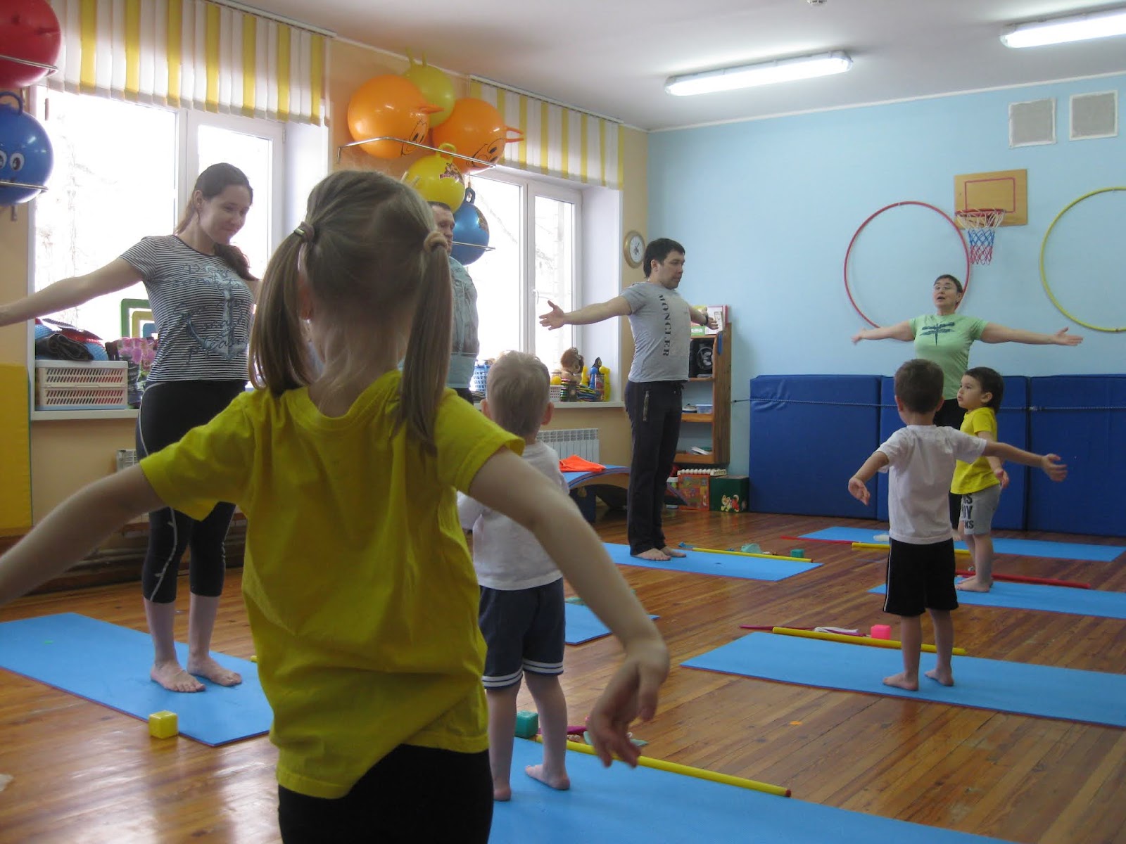 Родители вместе со своими малышами выполняли упражнения способствующие формированию правильной осанки и укреплению мышечного корсета, а так же укреплению свода стопы и профилактике плоскостопия. Упражнения дыхательной гимнастики полезны всем.